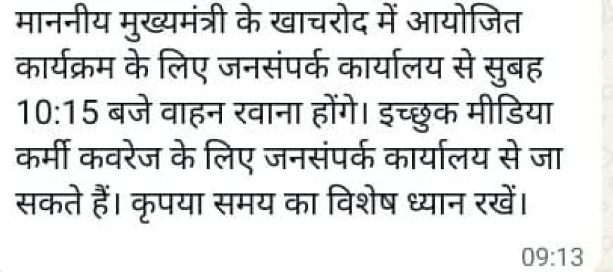 सबसे पहले ऊपर लगे स्क्रीन-शॉट में लिखे संदेश को ध्यान से पढ़े।फिर समय देखे।9 बजकर 13 मिनिट पर इसे अपलोड किया गया।2 जनवरी के दिन।वह भी समय की हिदायत के साथ। अब सवाल यह है। विकासपुरुष का यह आगमन कोई अचानक नहीं हो रहा था।एक दिन पहले ही दौरा तय था।फिर भी अपने सरकारी भोंपू ने कवरेज को लेकर कोई गम्भीरता नहीं दिखाई।जबकि यही संदेश 1 जनवरी की रात को डाला जा सकता था। ताकि जो मीडिया कर्मी जाना चाहते थे। वह रात से ही तैयारी करके समय पर सरकारी भोंपू कार्यालय पहुँच जाते। लेकिन इससे भोंपू विभाग को परेशानी है।तभी तो ऐसे वक्त पर सूचना दी।जब मीडिया चाहते हुए भी नहीं पहुँच पाए और भोंपू पर इल्जाम भी नही आए। ऐसी चर्चा ख़बरची वर्ग में सुनाई दे रही है। इसको लापरवाही की इंतिहा की संज्ञा दी जा रही है।बात दमदार है।मगर हमकों तो चुप रहने की बीमारी है